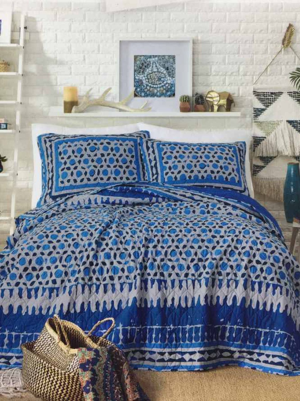 This Justina Blakeney by Makers Collective quilt set comes with two shams. The Himaya quilt design was inspired by Moroccan mosaics. It's meant to create a feeling of a romantic retreat in the bedroom. Both the helix embroidery pattern and the mosaic reference symbolize togetherness in this three-piece quilt set It's a nice look!