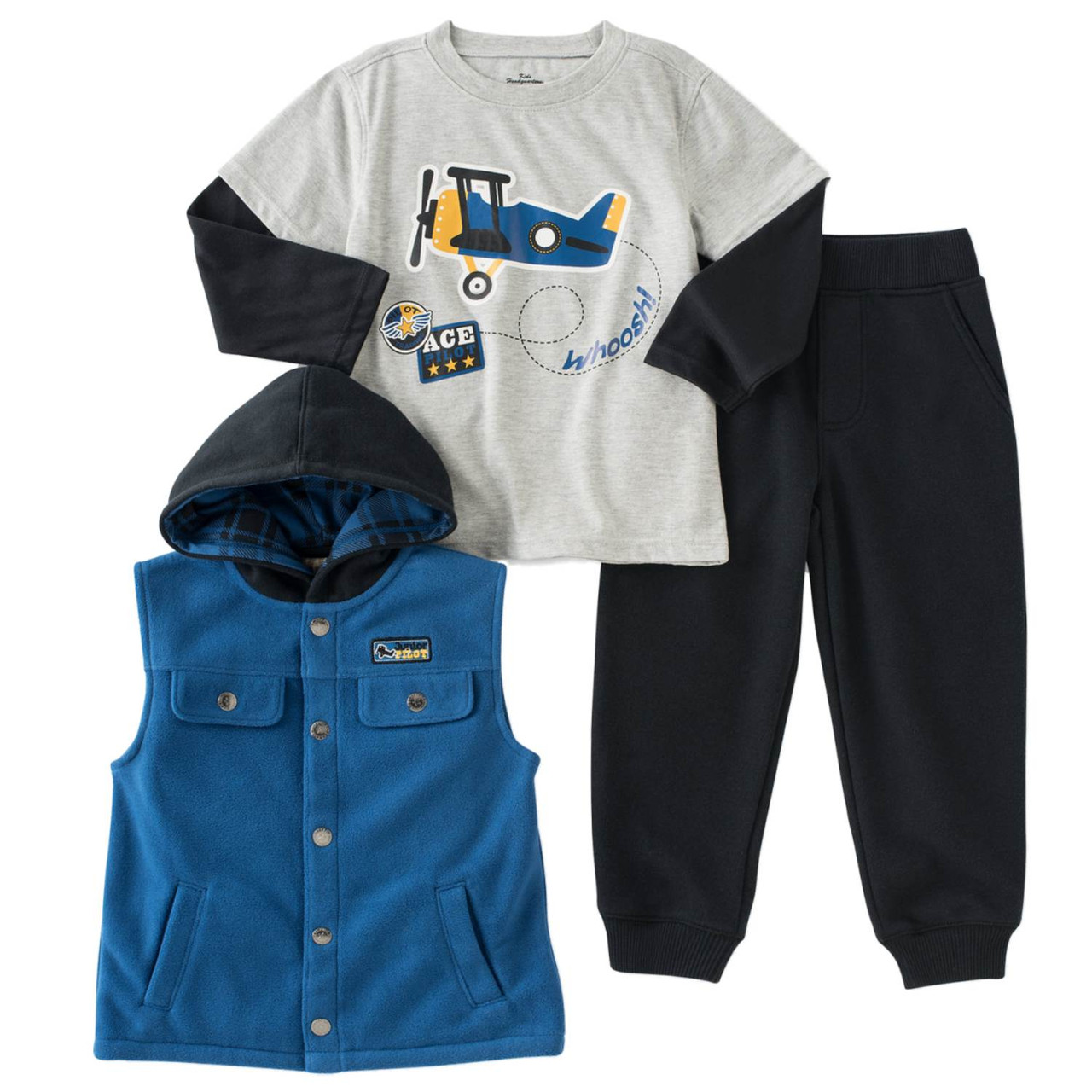 - Kids Headquarters Infant Boys 3 Piece Air Plane Shirt Pants & Hooded Vest