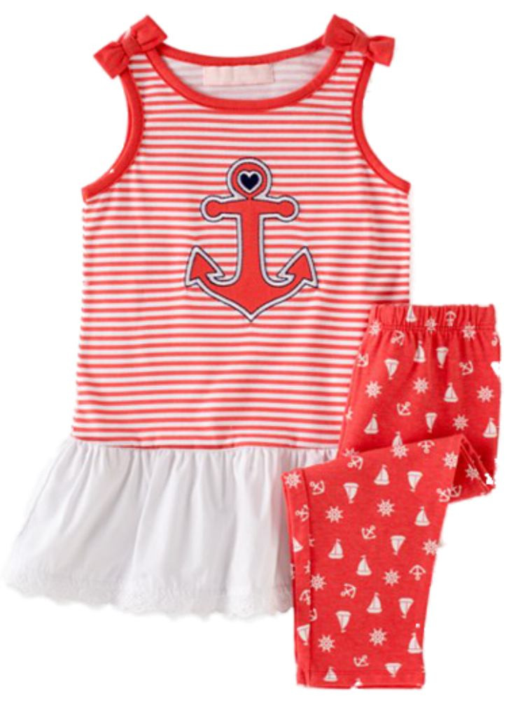 - Kids Headquarters Infant Girls 2 Piece Anchor Outfit Orange Shirt & Leggings