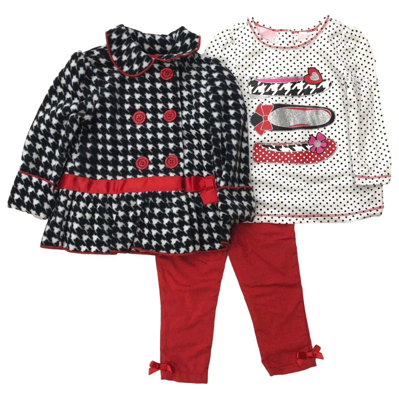 - Kids HQ Infant Girls 3pc Outfit Houndstooth Jacket Tee & Red Pants Set