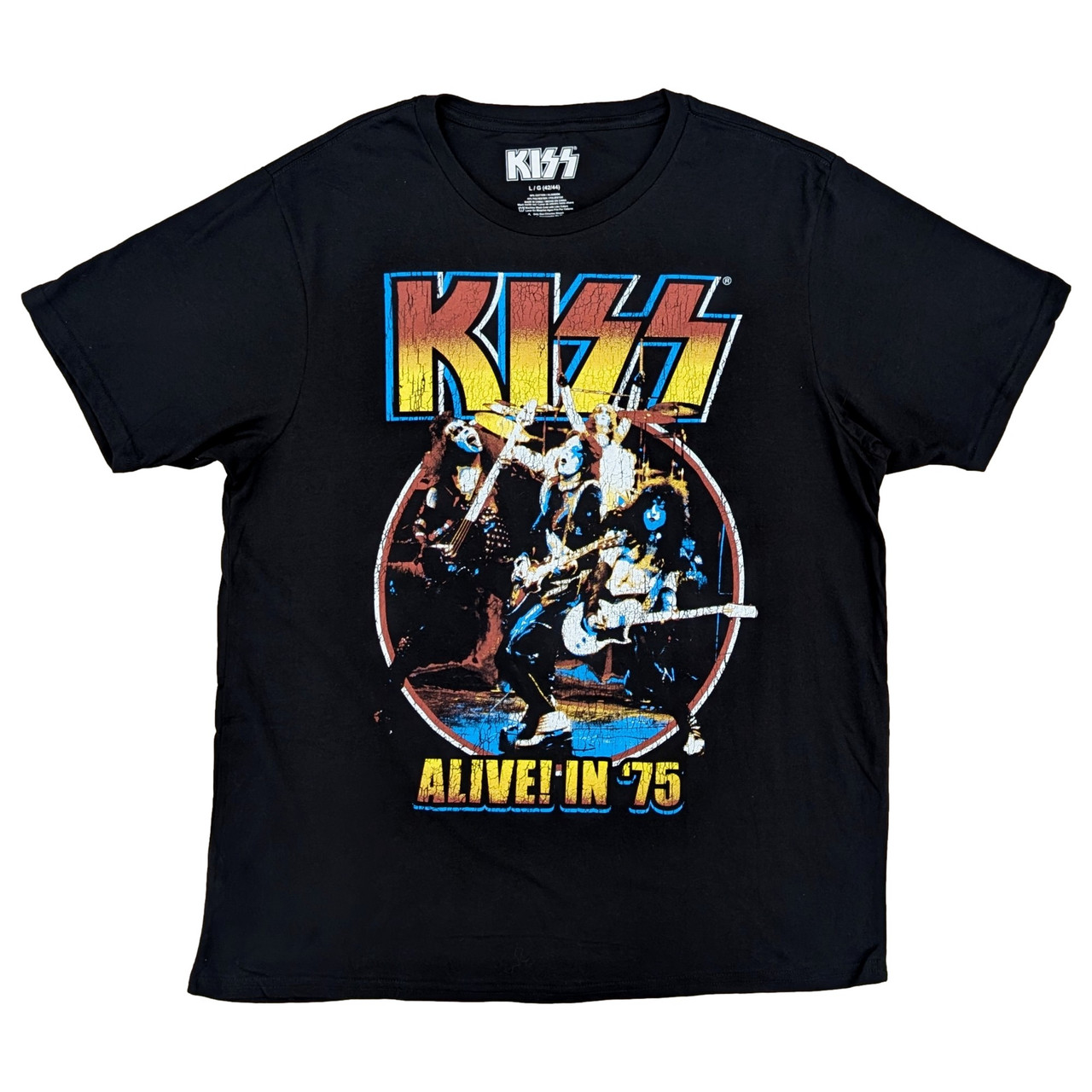 - KISS Mens Black Alive 75 Graphic Print Band Shirt Short Sleeve T-Shirt
