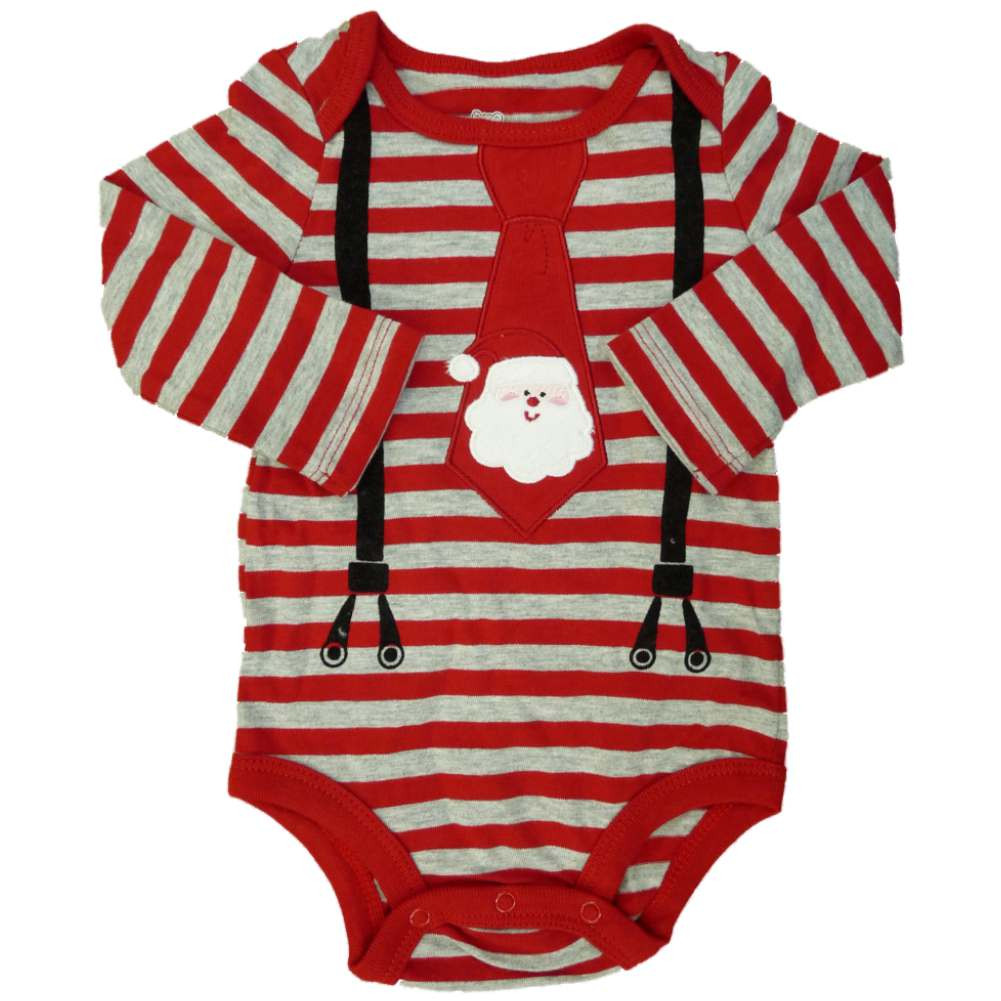 Adorable Santa Claus themed red & gray striped snap bottom creeper from Koala Kids.