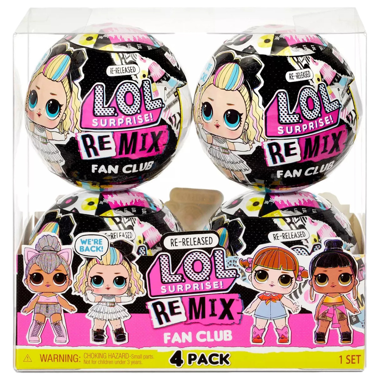 - L.O.L Surprise! Remix Fan Club 4pk, 4 Re-released LOL Dolls & 7 Surprises Each