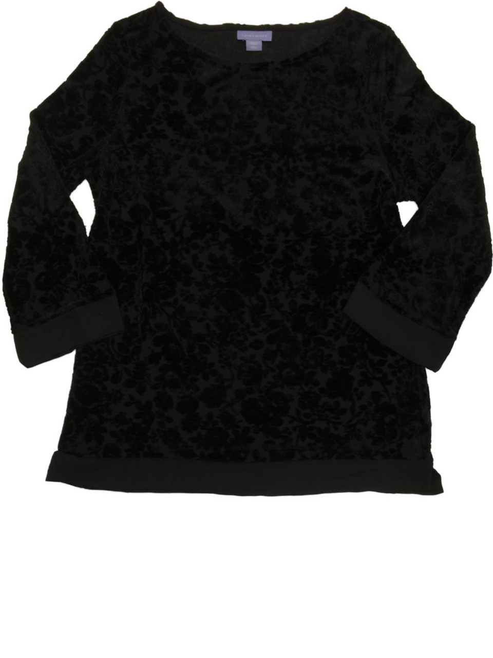 - Laura Scott Womens Black Floral Velvet Blouse Shirt Long Sleeve T-Shirt