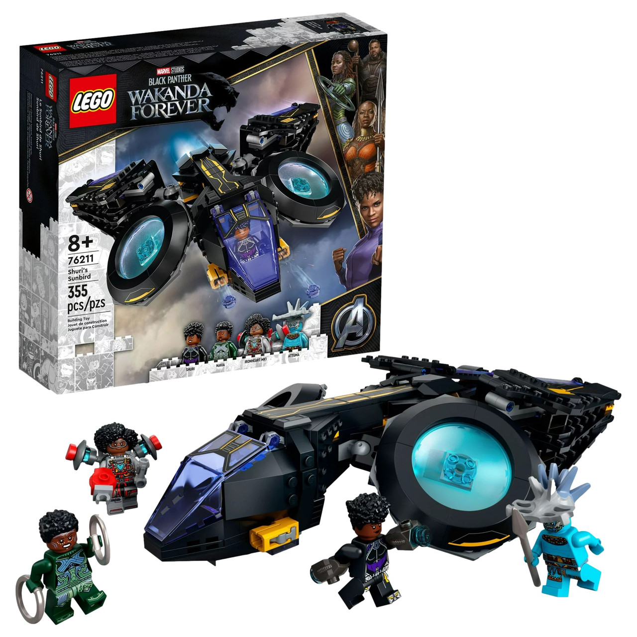 - This set features a LEGO brick-built version of Shuri's awesome Sunbird plane from Black Panther: Wakanda Forever plus 4 character minifigures