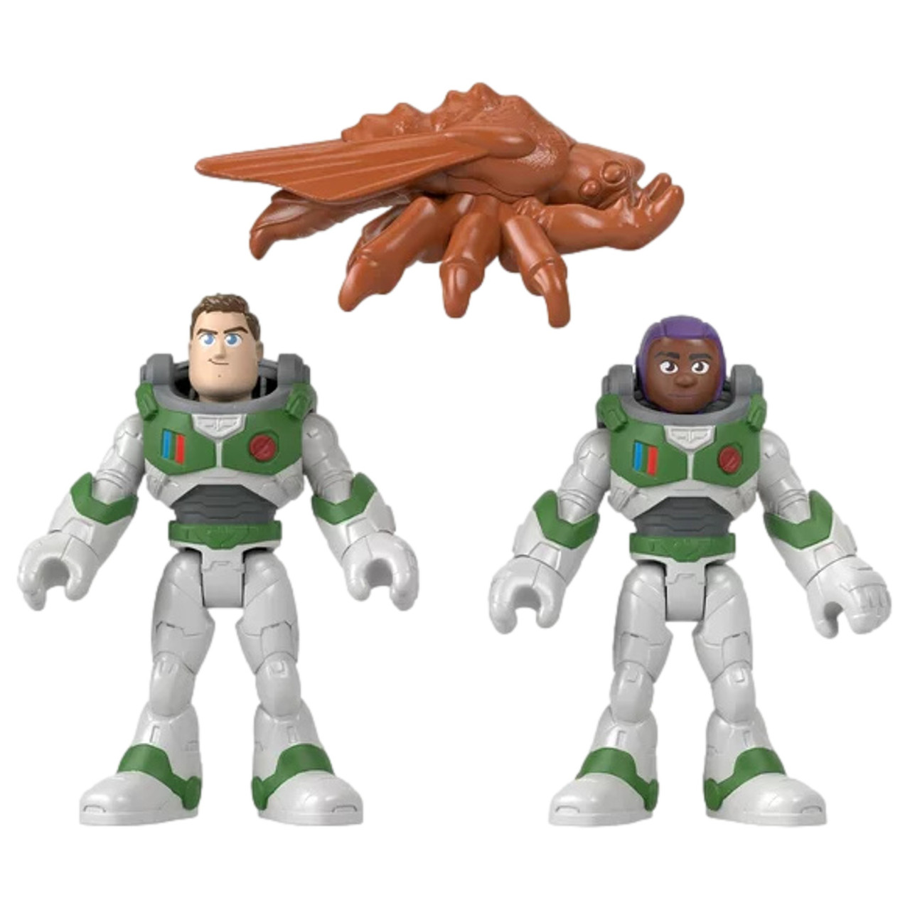 Kids can recreate their favorite moments from Disney and Pixar's film Lightyear, or create new adventures of their own, with this Imaginext poseable figure set from Fisher-Price. This set includes 2 characters from the movie, Space Rangers Buzz Lightyear and Alisha Hawthorne, plus a bug accessory piece for action-packed pretend play. Evil doers of outer space don't stand a chance with this duo, and your Space Ranger-in-training, on guard! This Toy Story set will provide hours of imaginative play!