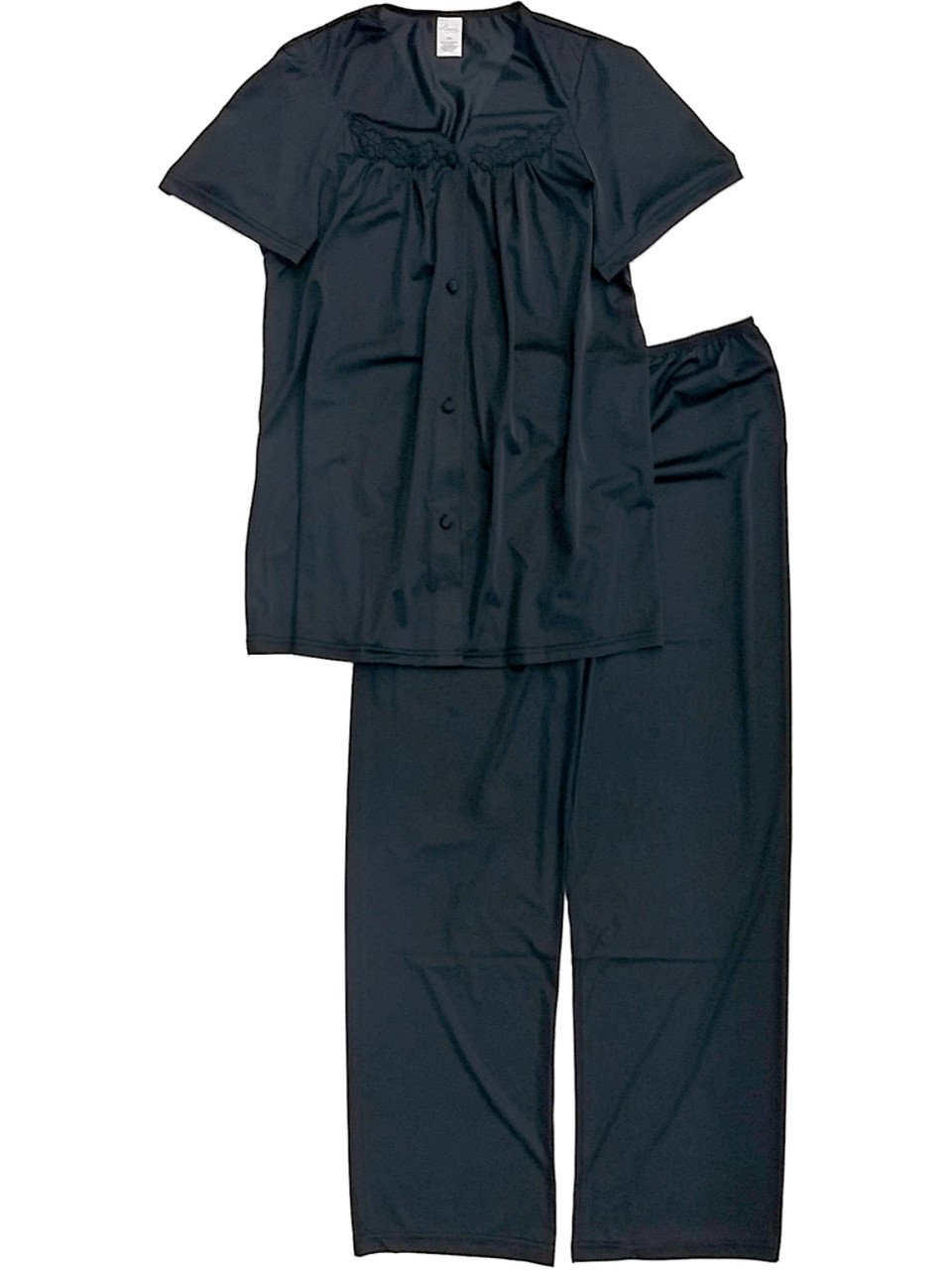 - Lissome Lounge Womens Classic Black Silky Soft Semi-Sheer Pajamas Sleep Set