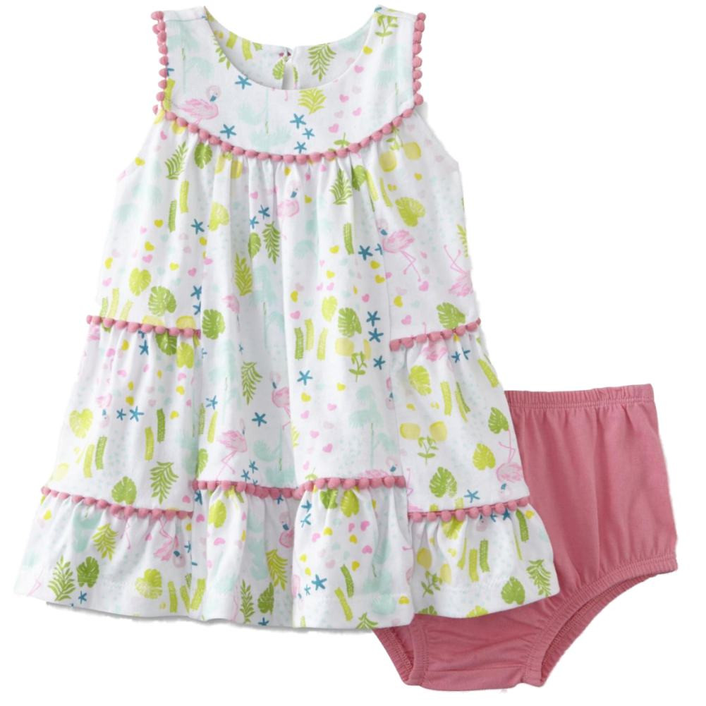 - Infant Girls 2 PC Baby Outfit Pink Flamingo Sundress Dress & Panty Set