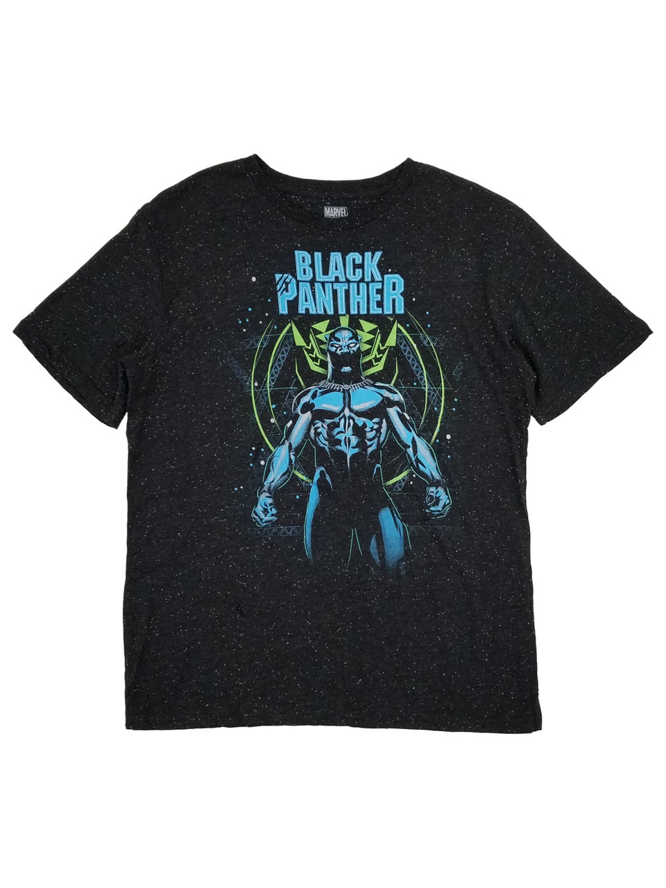 - Mad Engine Mens Black Speckled Marvel Black Panther Graphic T-Shirt