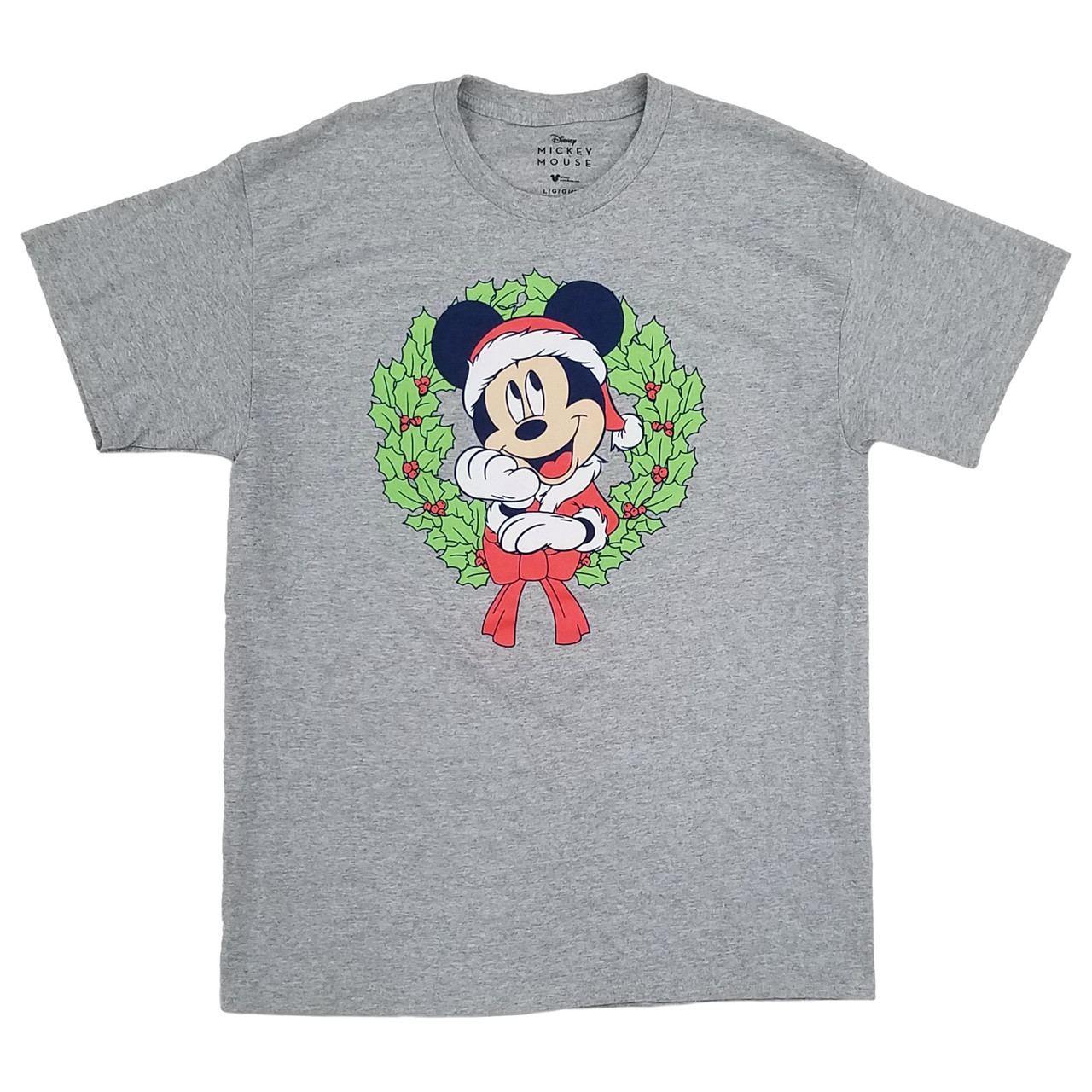 - Mad Engine Mens Gray Santa ClaMickey Mouse Christmas Wreath Holiday T-Shirt