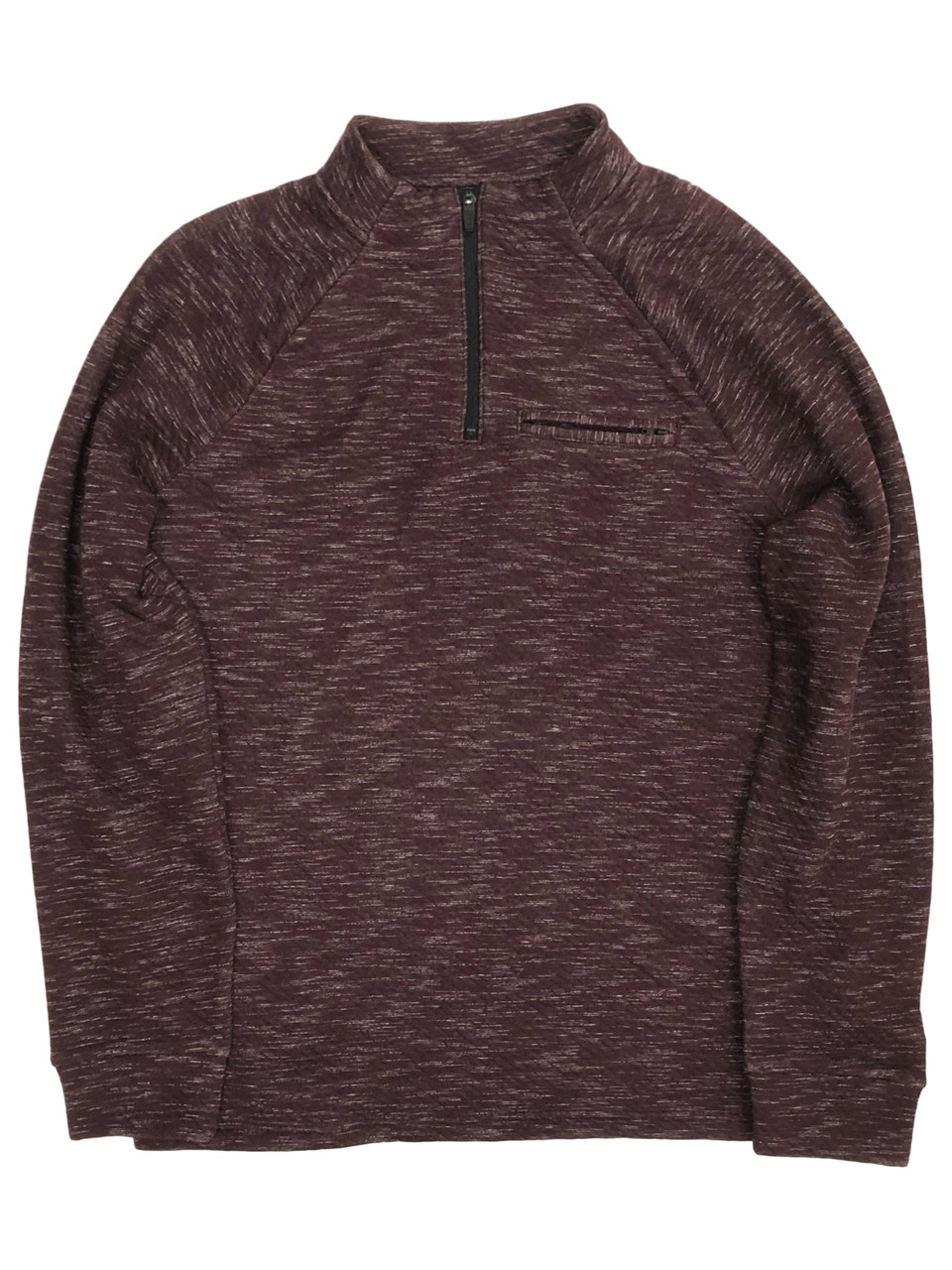 You will love the cozy feel of this burgundy speckle slim fit Marc Anthony quarter zip pull over jacket!