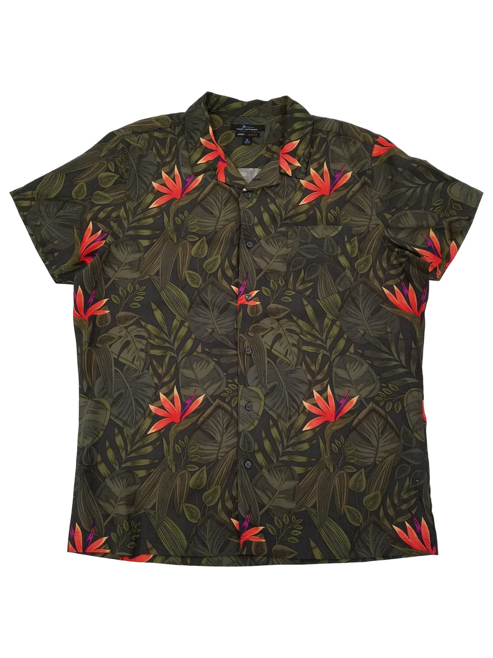 - Marc Anthony Mens Green Leaf Slim Fit Short Sleeve Button-Down Shirt