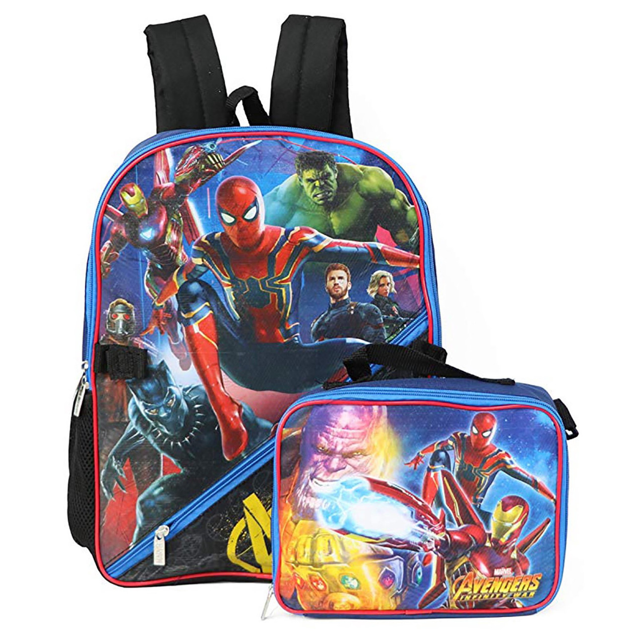 - Marvel Avengers Infinity Wars backpack and lunchbox set has cool graphics with Iron-man, Hulk, Spider-Man, The Black Panther and more