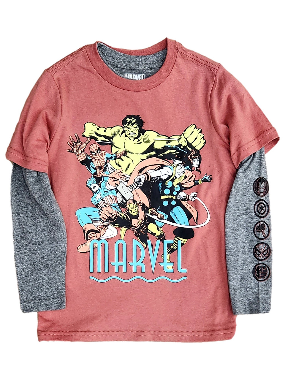- Marvel Boys Pink & Gray Long Sleeved Spider-Man, Hulk & Thor Tee Shirt