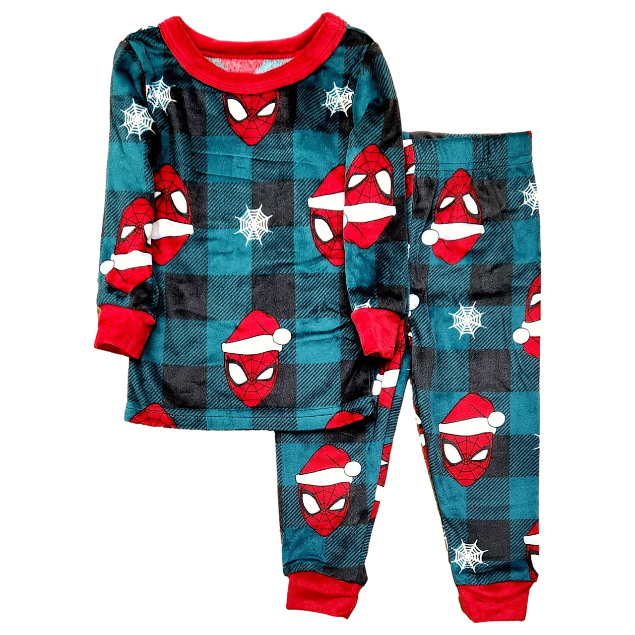 Your little Spider-man fan will love wearing these cozy green & red Christmas Spider-Man pajamas!