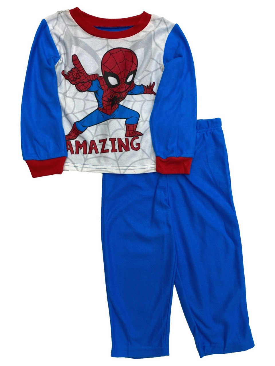- Marvel Comics Toddler Boys White & Blue Flannel Spider-Man Pajamas Sleep Set