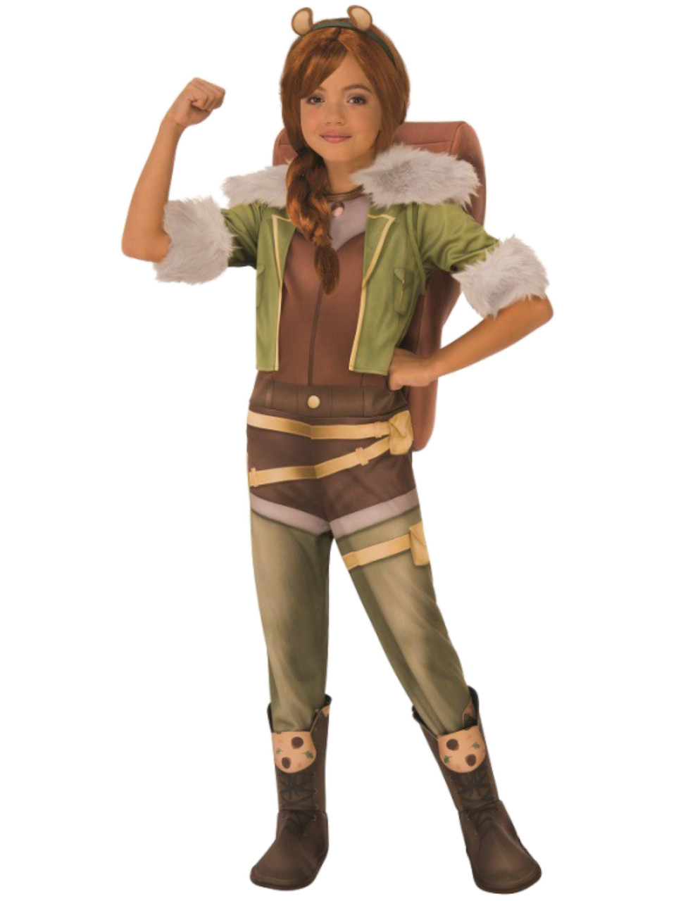 - Includes: Jumpsuit with faux fur accents & Boot Tops, Headband, & 3D Stuffable tail