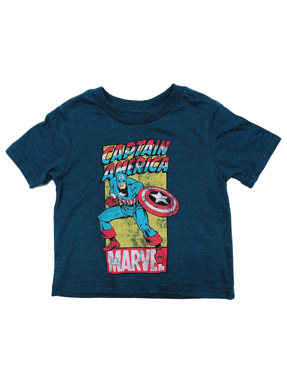 - Marvel Infant & Toddler Boys Short Blue Distressed Captain America T-Shirt