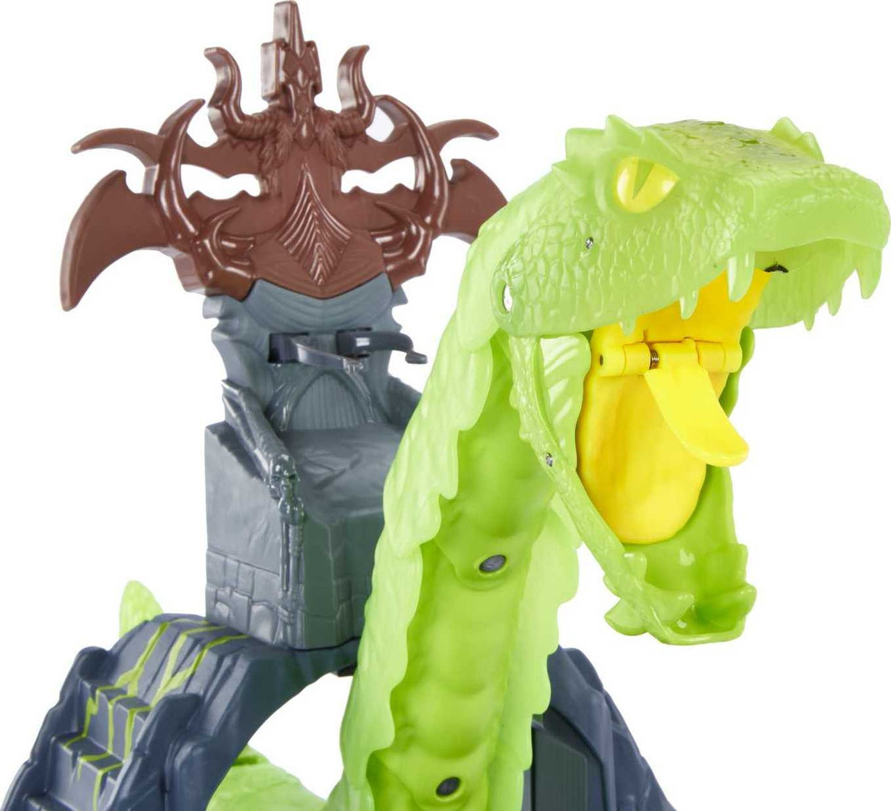 Help He-Man end Skeletor's evil reign and slay the Havoc Serpent! On the dark hemisphere of Eternia stands Skeletor's fortress, Snake Mountain. Now He-Man fans can play out thrilling scenes in the battle between good and evil with this authentic Snake Mountain Throne playset! Inspired by the animated series, He-Man and The Masters of the Universe, set includes throne room, moveable battle platform and controllable giant Havoc Serpent. Strike the serpent enough times and the throne ejects! Compatible with He-Man and The Masters of the Universe figures (sold separately)