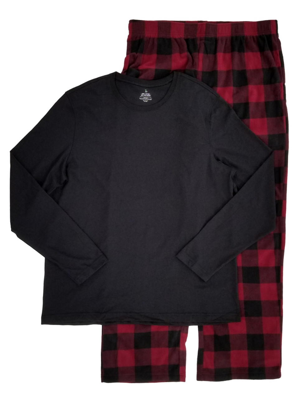 - Mens 2 Piece Long Sleeve Shirt & Burgundy Plaid Fleece Pants Pajama Sleep Set