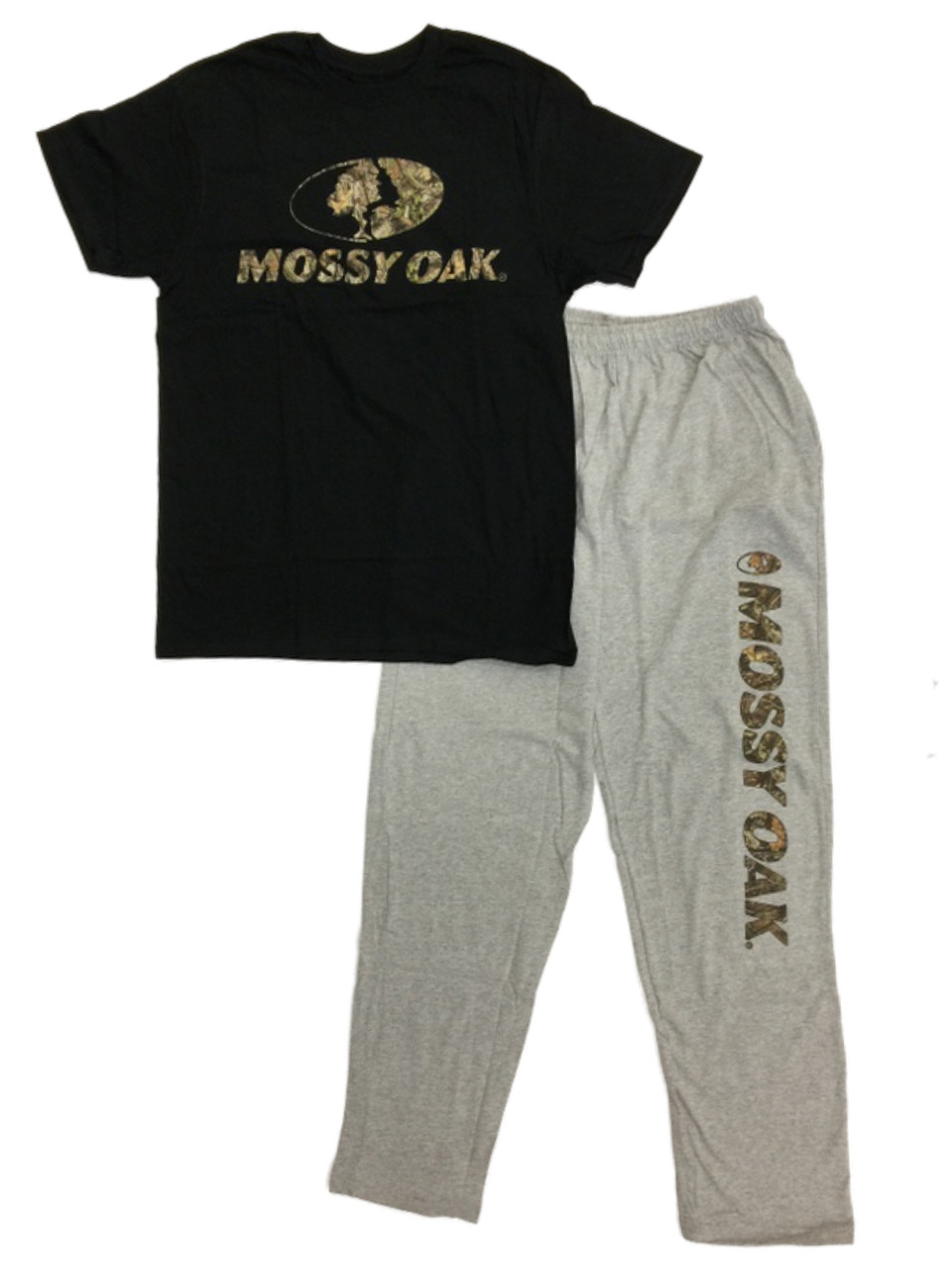 - Mens 2pc Black & Gray Mossy Oak Pajamas Sleep Set Lounge Pants & T-Shirt Set M