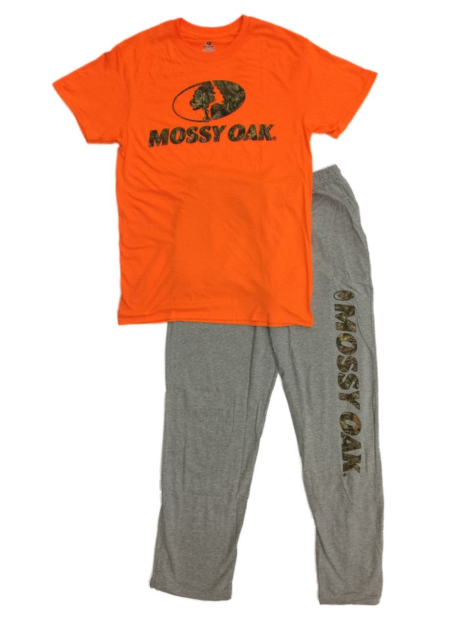 - Mens 2pc Orange & Gray Mossy Oak Pajamas Sleep Set Lounge Pants & T-Shirt Set