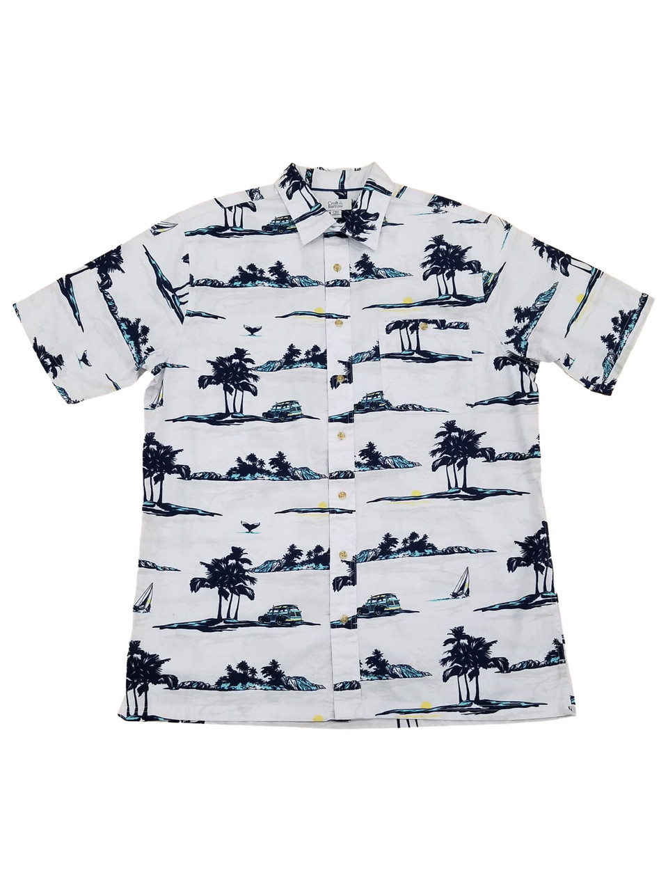 - Mens Big & Tall White Tropical Whale Scene Short Sleeve Button-Down Shirt