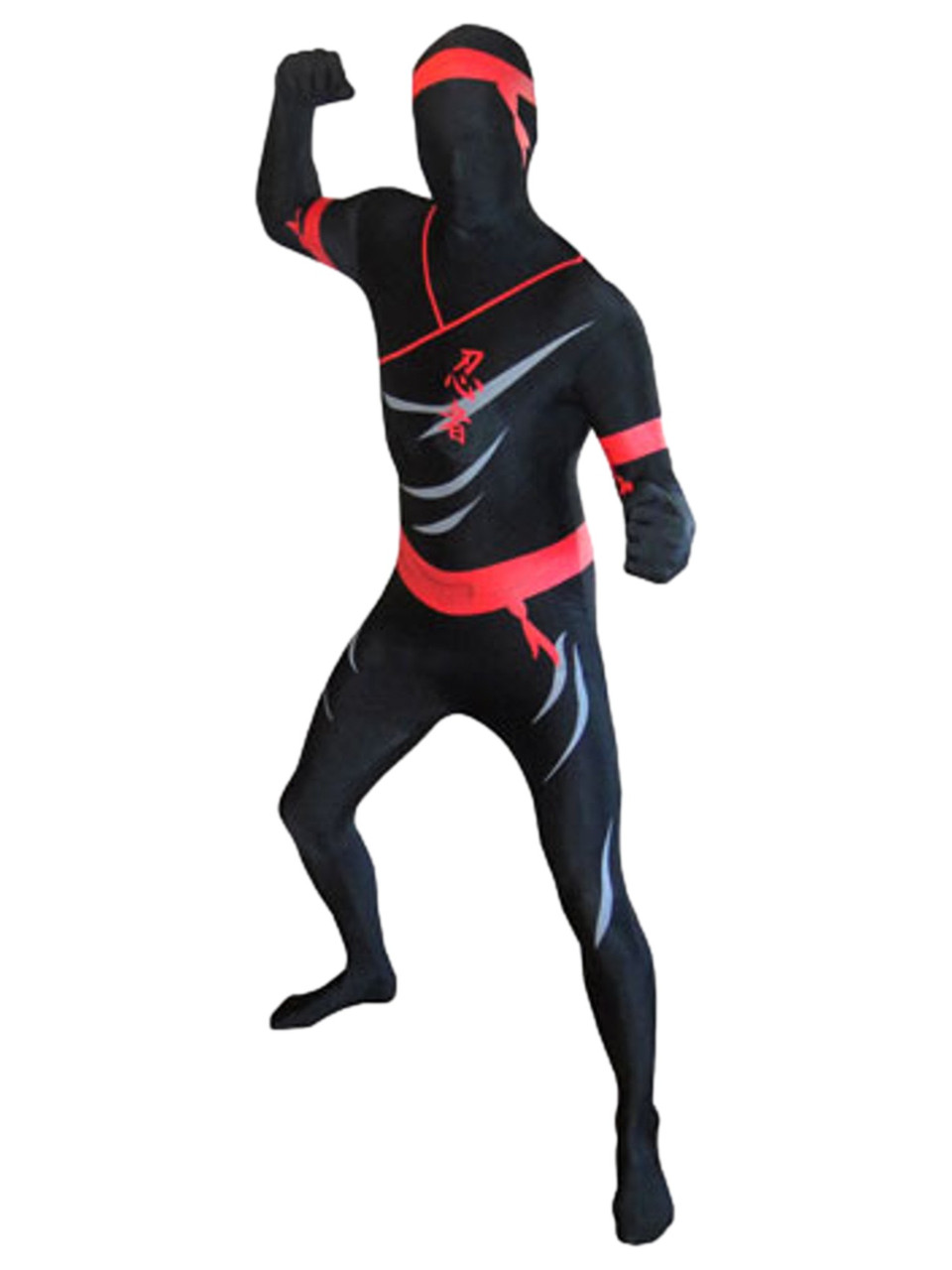 Mens Black Full Body Stretch Jumpsuit Ninja Costume Bodysuit X-Large