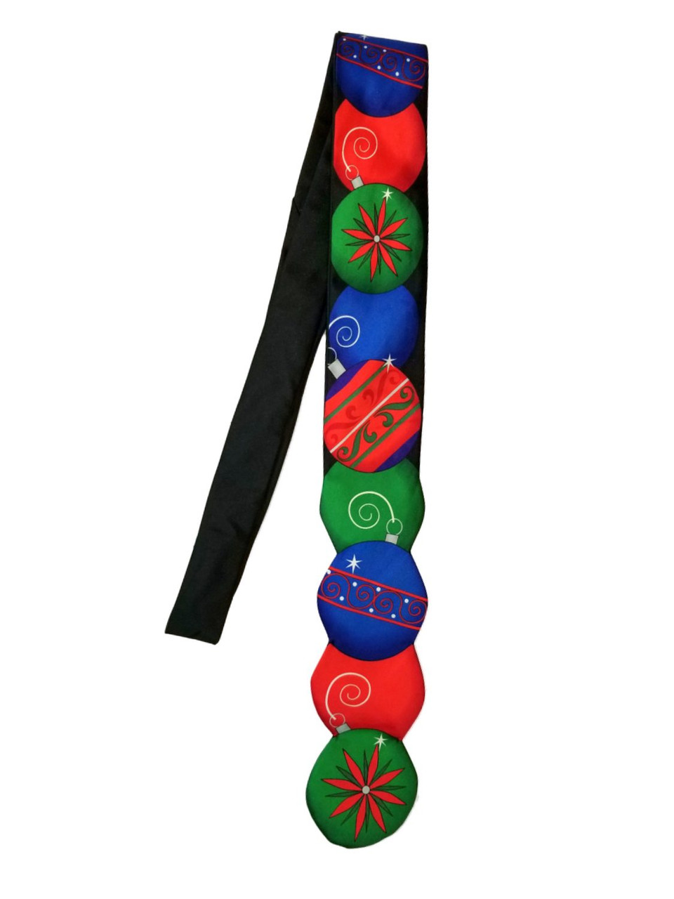 This fun black holiday necktie features large Christmas ornaments running the length of the tie. It is sure to be a crowd favorite.>