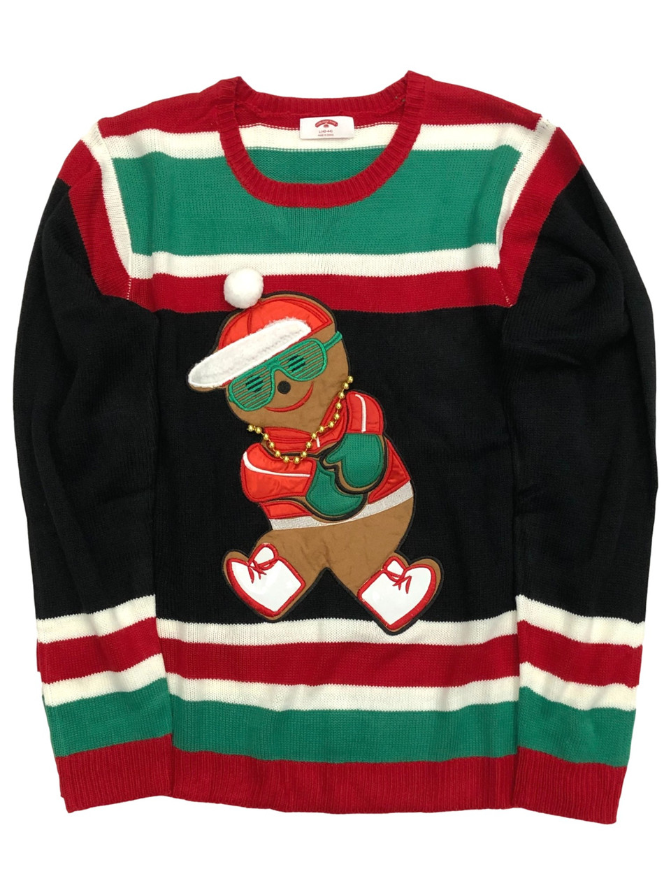- Mens Black Stripe Hip Hop Gingerbread Man Holiday Christmas Sweater