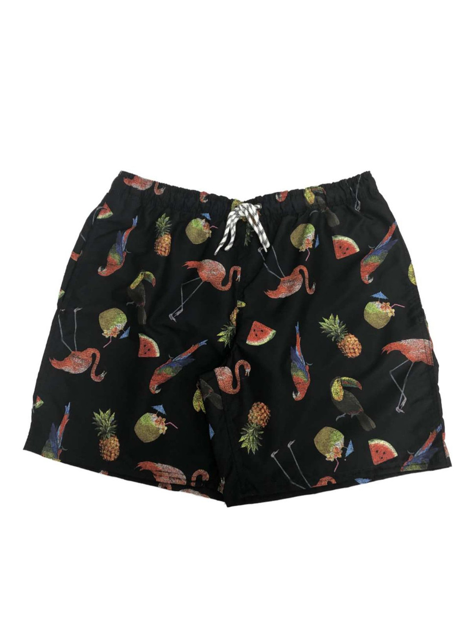 - Mens Black Tropical Fruit Flamingo Toucan Parrot Swim Trunks Board Shorts