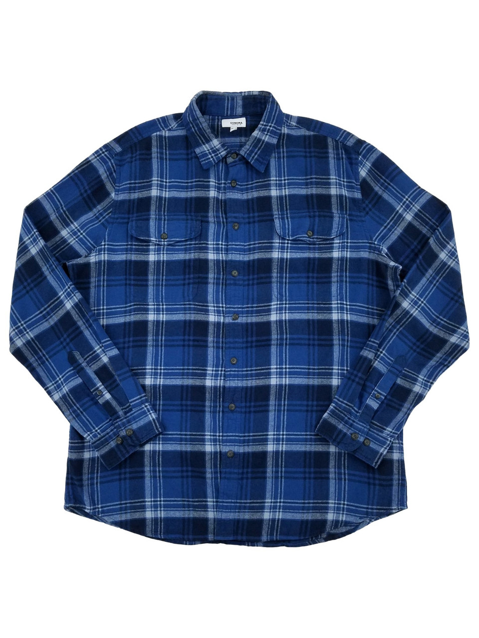 - Mens Blue Plaid Flannel Long Sleeve Button-Down Shirt