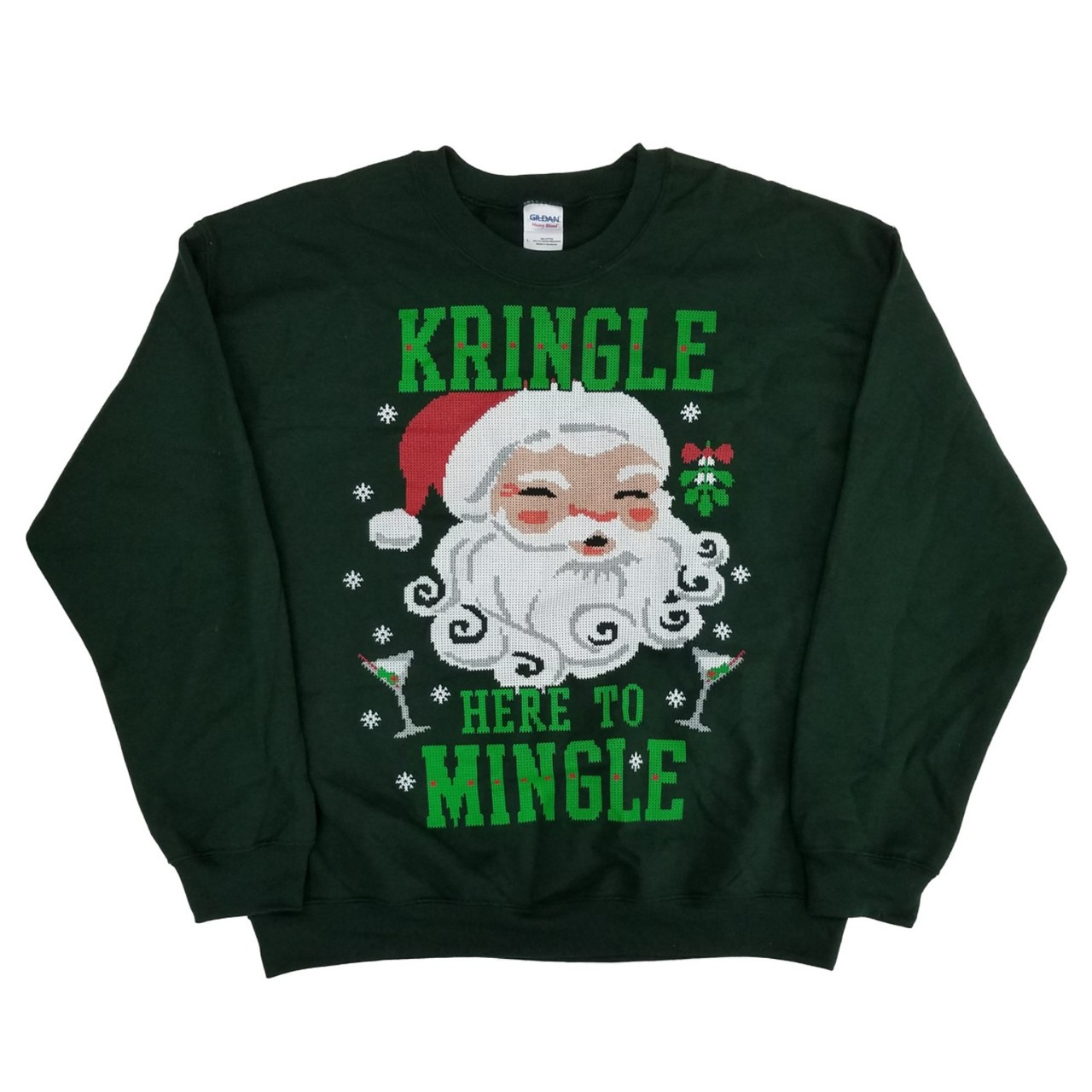 - Mens Dark Green Kringle Here To Mingle Santa Martini Christmas Sweatshirt