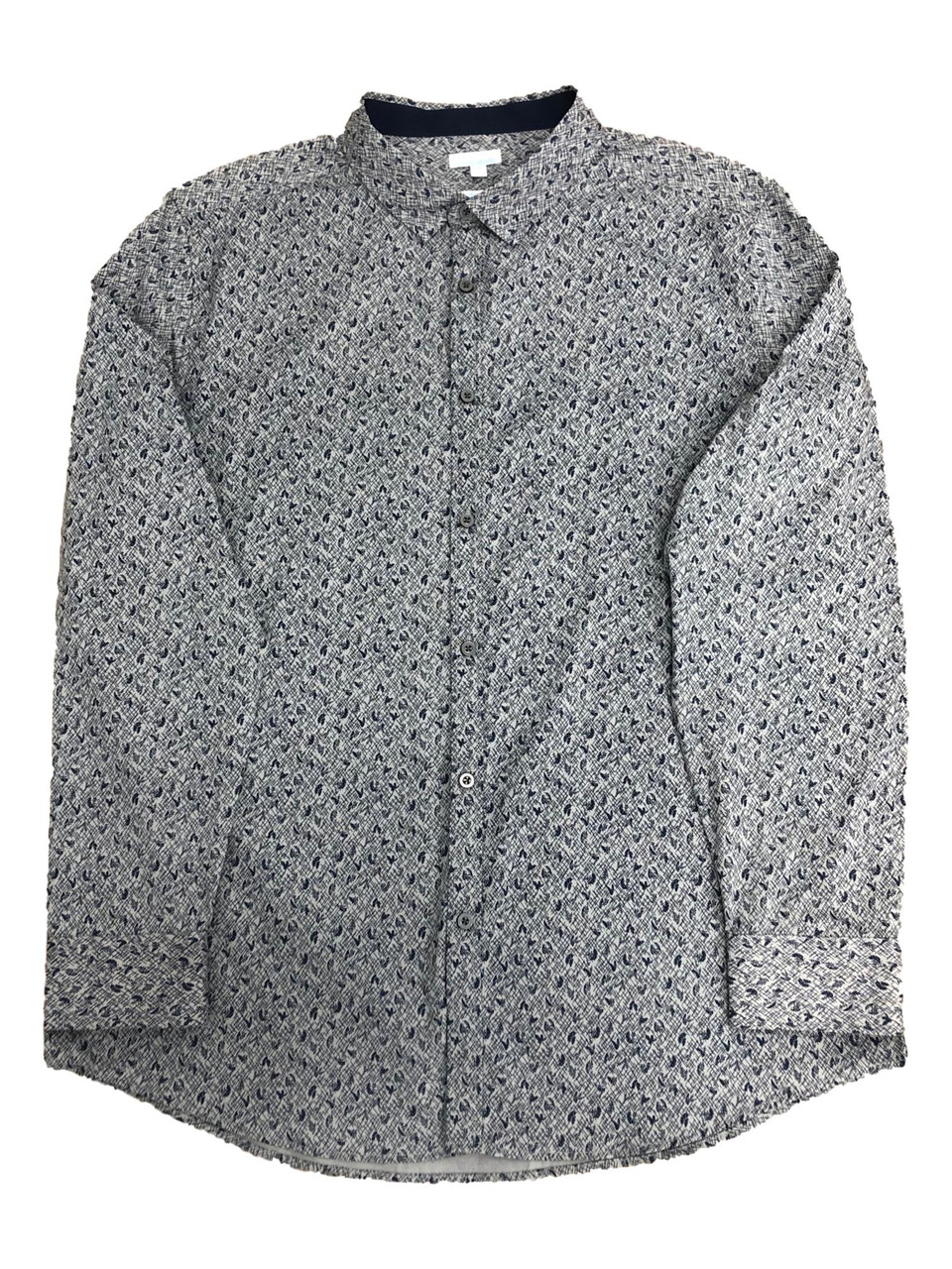 - Mens Gray Blue Leaf Slimfit Long Sleeve Button Front Collar Dress Shirt