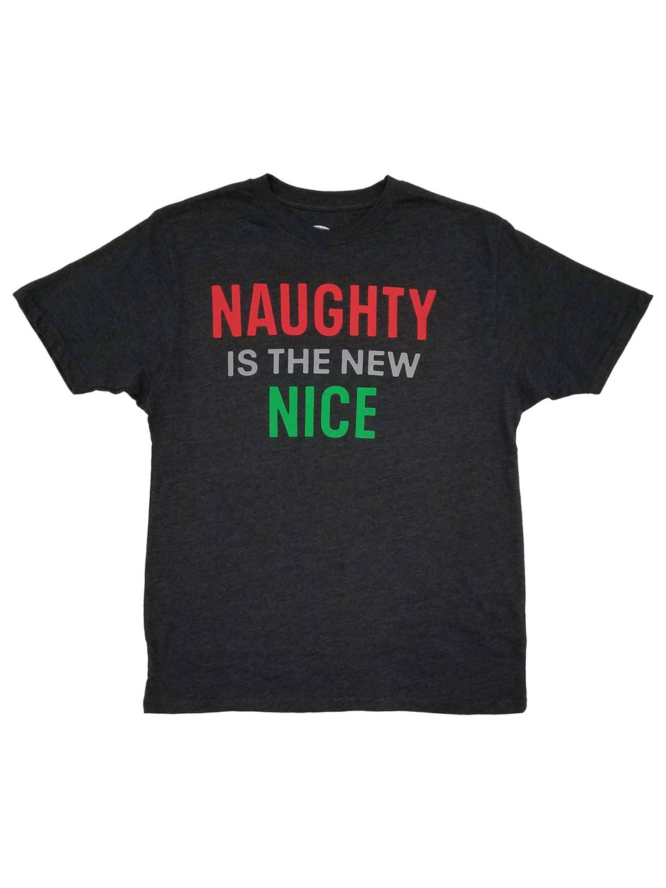 - Mens Gray Heather Naughty Is The New Nice Short Sleeve Christmas T-Shirt