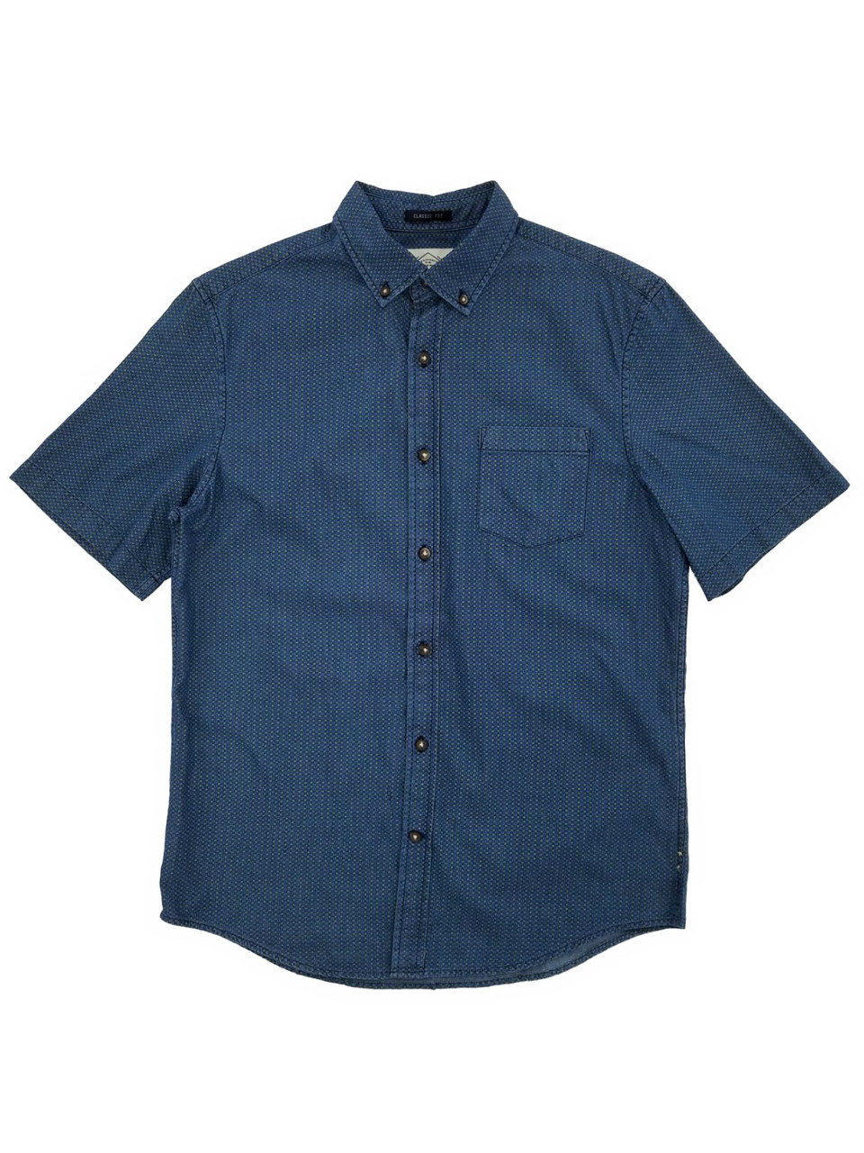 - Mens Indigo Square Geo Button-Down Short Sleeve Shirt