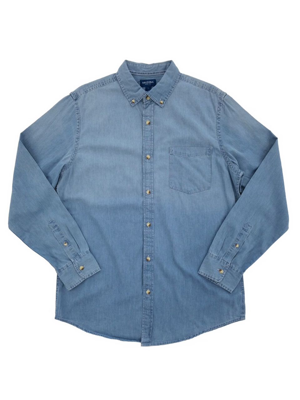 - Mens Blue Lightwash Long Sleeve Button-Down Shirt Large