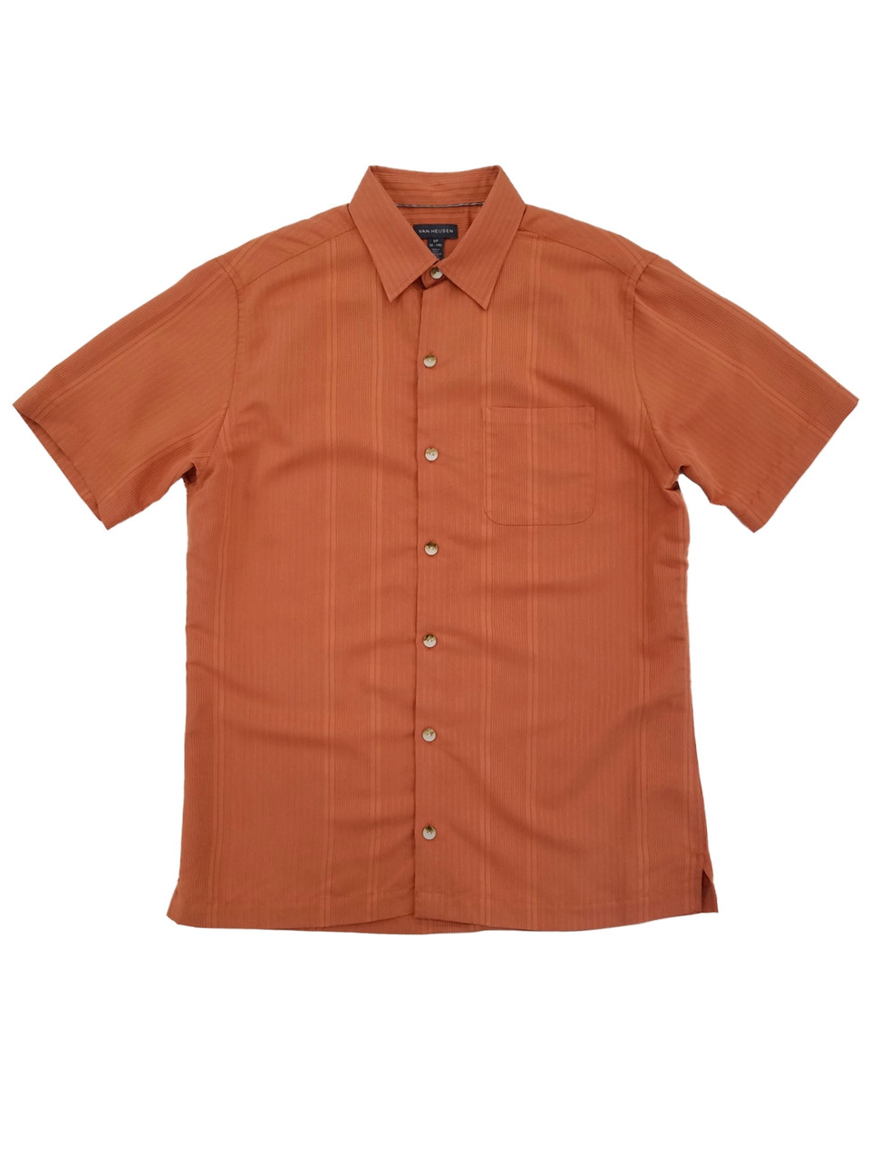 - Mens Orange Stripe Classic Fit Air Short Sleeve Button-Down Shirt