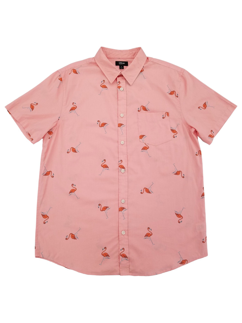 This woven shirt features a fun flamingo print pattern that will bring you lots of attention!