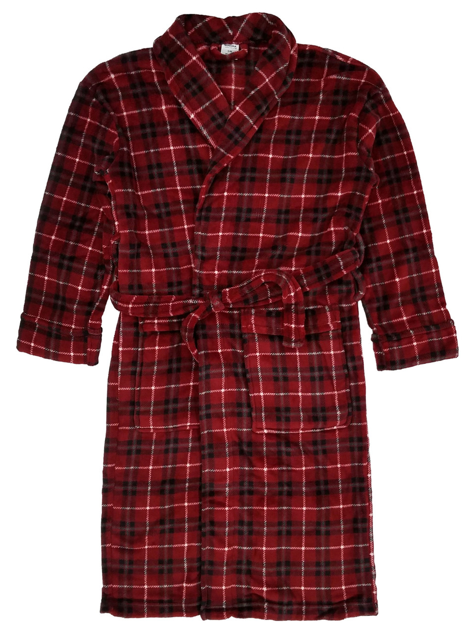 - Mens Red Plaid Plush Microfleece Robe House Coat Bathrobe