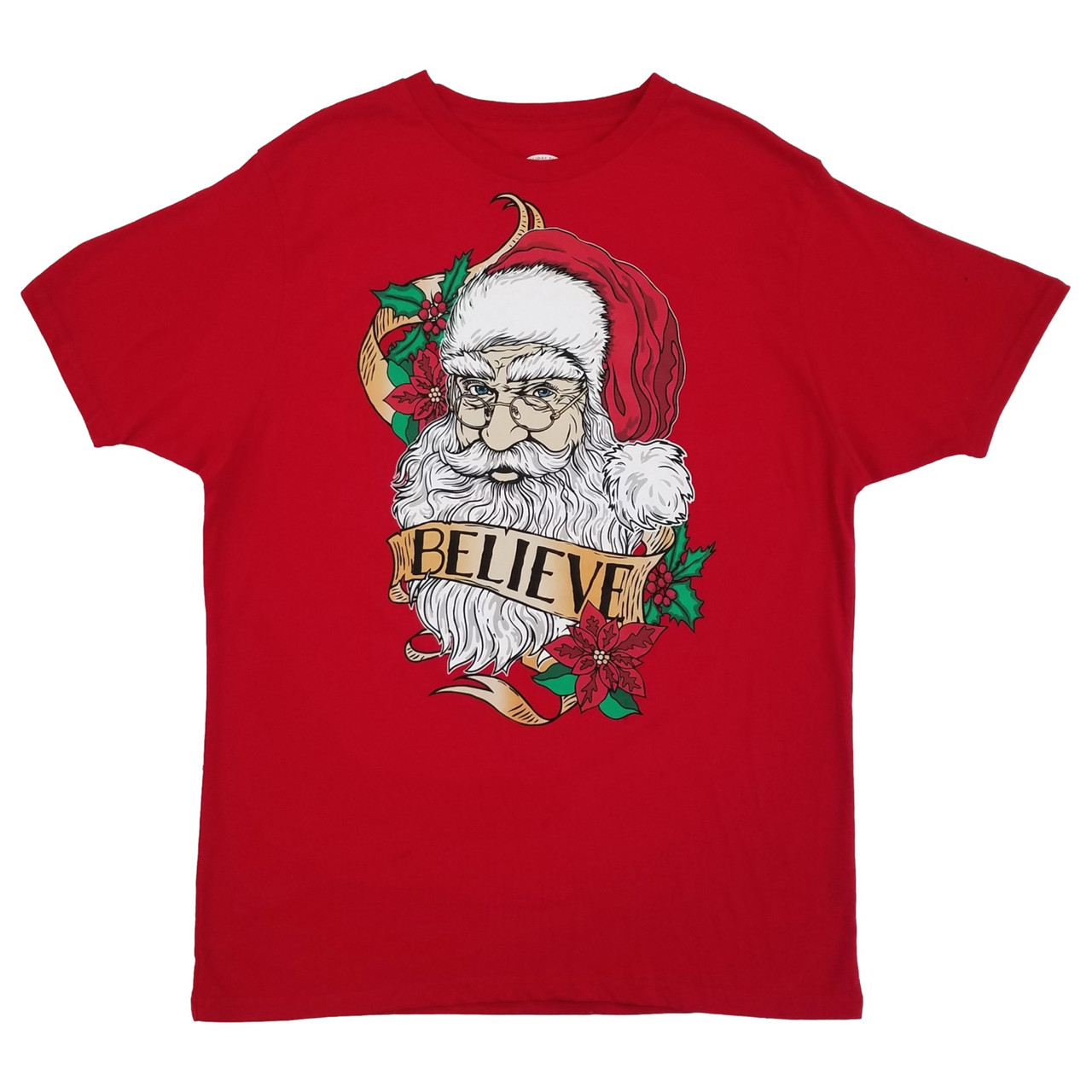 - Mens Red Short Sleeve Santa Claus Believe Christmas Holiday T-Shirt
