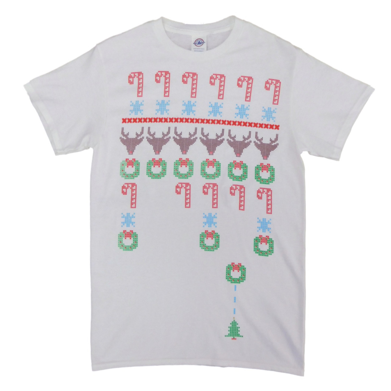 - Mens White Christmas Holiday Space Invader Videogame T-Shirt