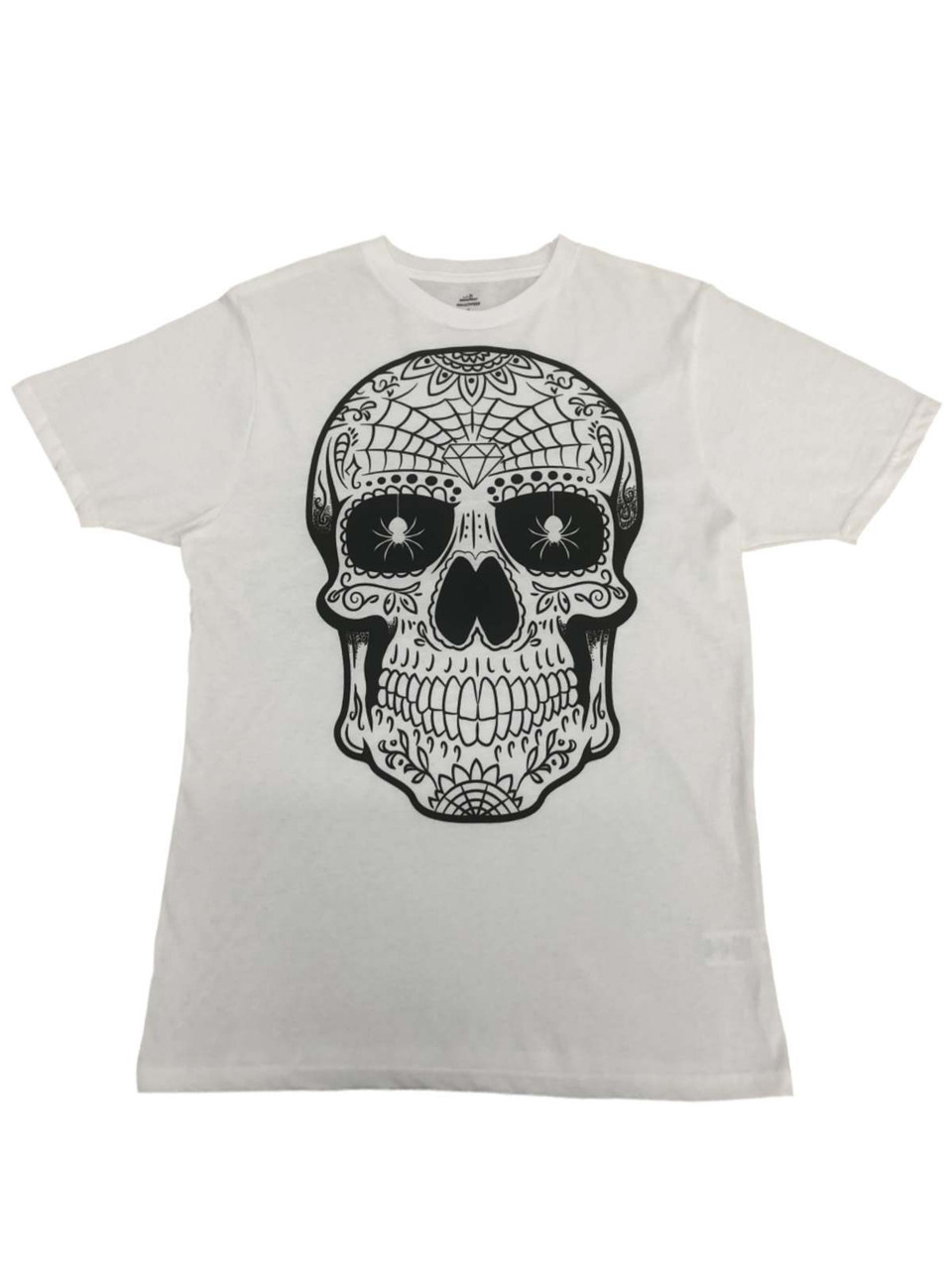 - Mens White Skull Day Of The Dead Calavera Halloween Graphic Tee T-Shirt