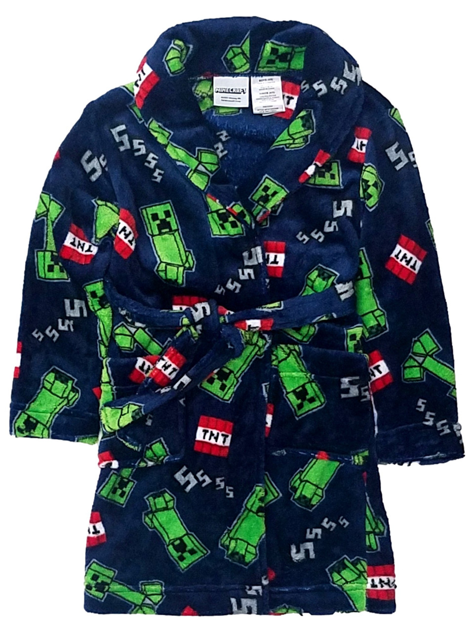 - Minecraft Boys Plush Blue Creeper TNT Bath Robe House Coat XS (4-5)