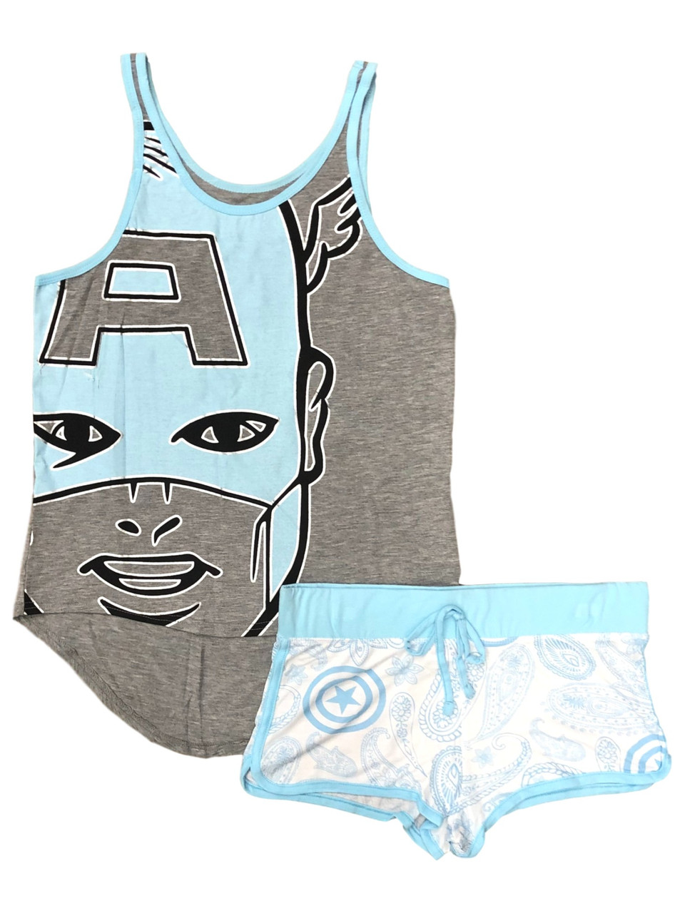 - MJC Marvel Womens Gray Captain America Pajamas Tank Top & Short Sleep Set