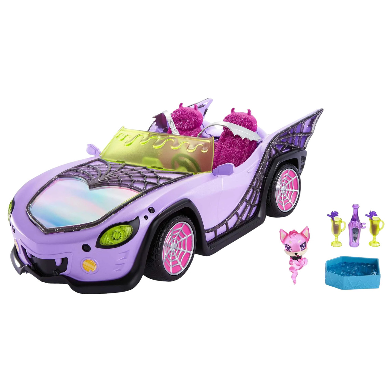 - Monster High Ghoul Mobile Toy Car, Purple & Spiderweb Convertible with Pet