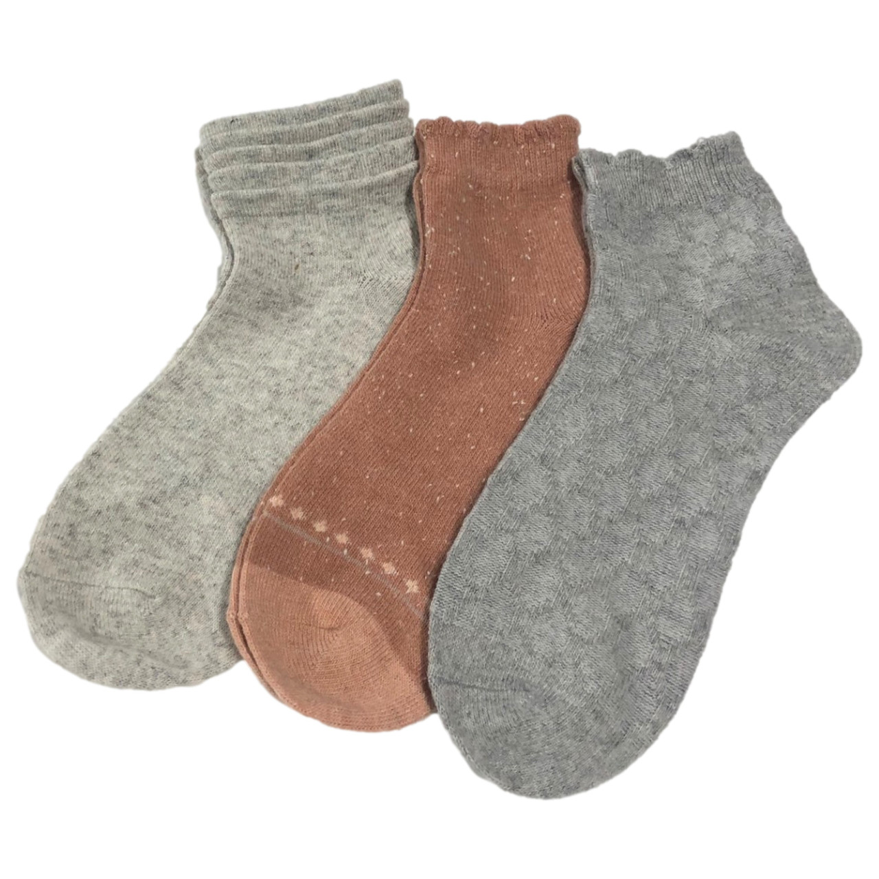 - Muk Luks Womens Mini Crew Tier Ankle Socks 3 Pair Gray & Peach