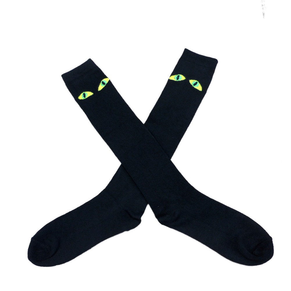These fun black cat eye Halloween socks are so cute, you will want to wear them all of the time.