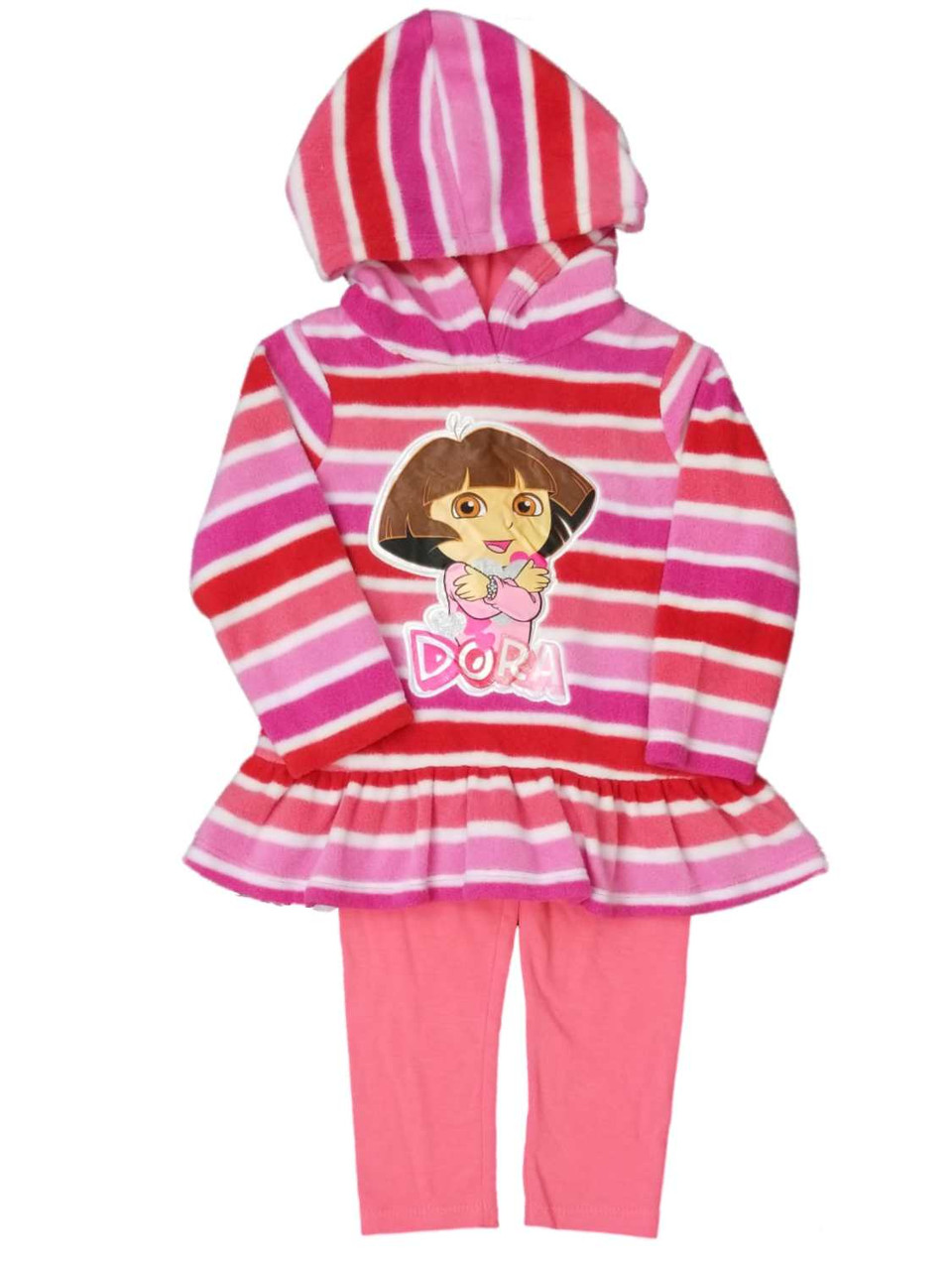 This adorable 2 piece toddler girl's Dora the Explorer outfit includes a pink striped fleece top and pink legging.