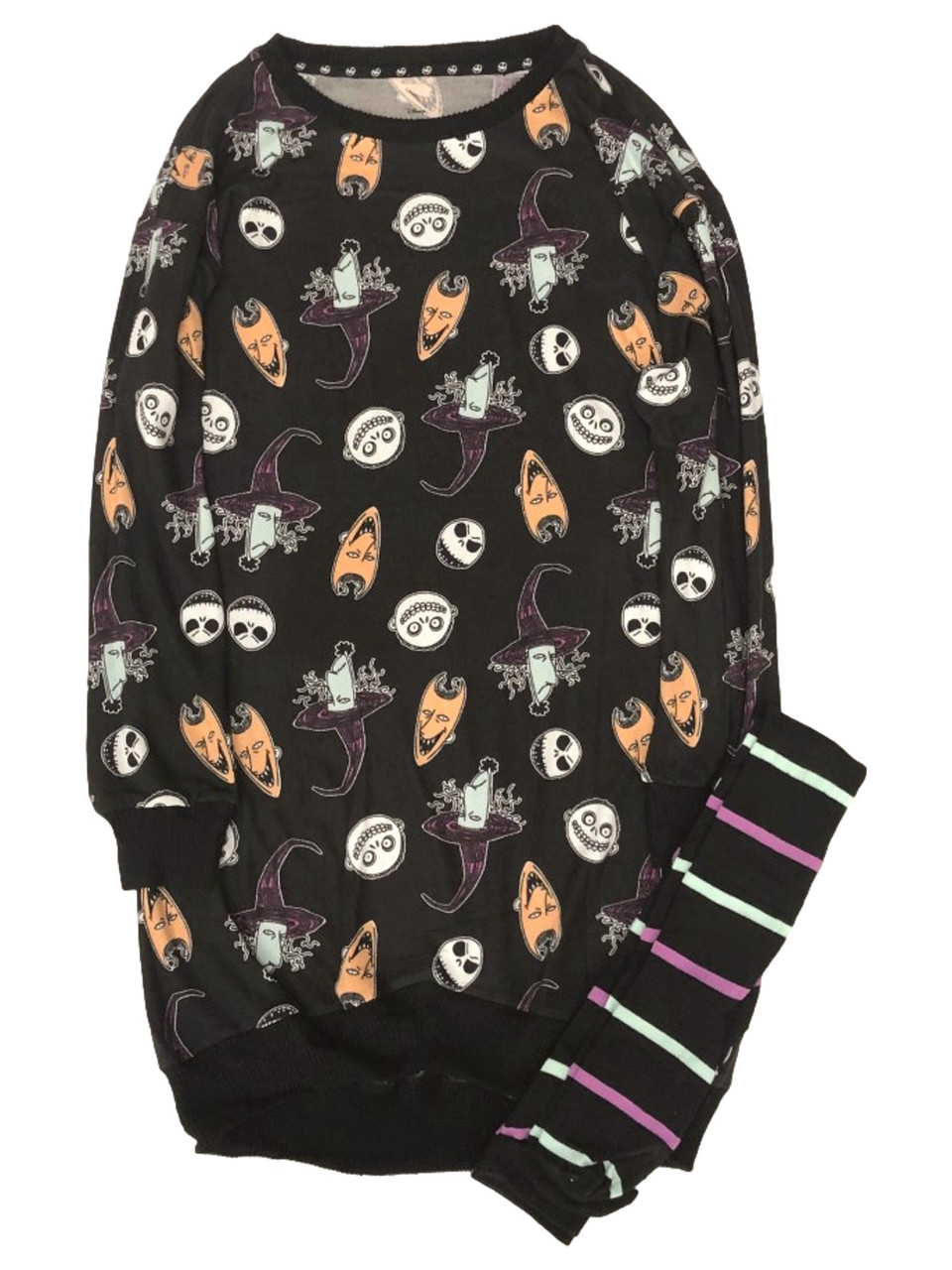You will be ready for Halloween in this super cozy black Nightmare Before Christmas themed long sleeved sleepshirt nightgown with matching black striped knee socks!
